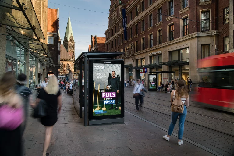 Eine Straßenbahn im DIAKO-Design, City-Screens und Plakate an Hotspots in ganz Bremen: die perfekte Kombination aus analoger Präsenz und digitaler Reichweite.